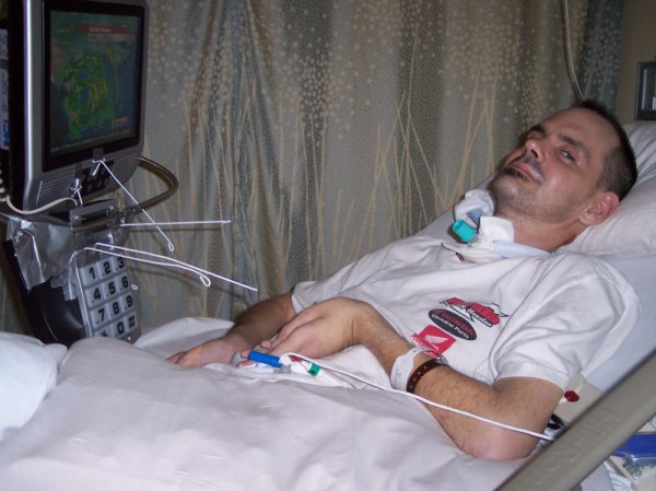 My son Kenneth Steven Warr and his wife were involved in a terrible auto accident on Sunday morning, May 4, 2008. While they were both hurt, Ken sustained the kind of spinal cord injury which is generally expected to result in paralysis of much of his body. The 4th, 5th and 6th cervical vertebra were badly shattered and the C2 received a break also. He was life flighted to Memorial Hermann Hospital in the Texas Medical Center and stabilized. A "halo" brace was attached to his neck and head to completly immobilize the injury. He was also placed on a respirator to aid in his breathing. Monday May 5